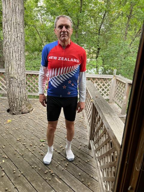Today I bicycled 40 miles with Bob Kuhn and Pat Edwards as training for the renowned bike trails in New Zealand. I wore my new NZ jersey and had 2 strangers make nice comments. Pat mentioned the stars on the jersey signify the Southern Cross and I will attach pictures to convince you.