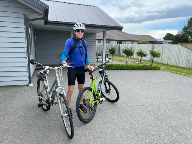 During our first full day in New Zealand (BEFORE we knew we were going to get sick from Covid) we got a local bank account opened and bought bikes at Around Again Cycles in Christchurch. The bikes are expertly refurbished and a good value, if not the prettiest transportation. Kiwis really know how to reuse and recycle things as importation is an expensiven proposition here. Notice our nice digs behind me!