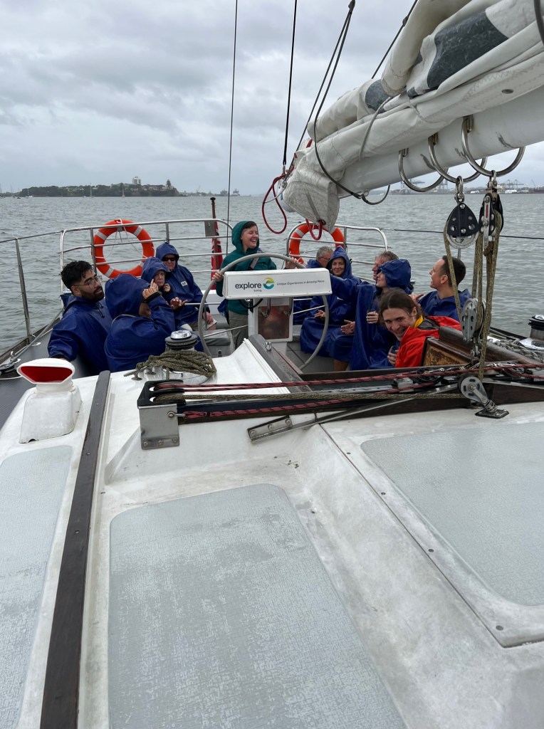 After our Rotorua day, we returned to Auckland to tour the biggest city in New Zealand. We enjoyed a free, guided downtown walk learning the locals call their country “Noo Zillon”. We filled out our day going to the Mt. Eden crater on the edge of town (first picture) and finished with an evening meal sailing cruise in the harbor where Missy steered the ship on a big U-turn(second picture).