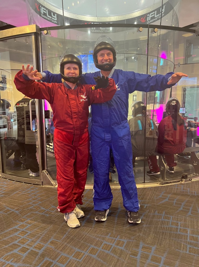 Queenstown is an adventure destination so, while Brian and Missy did canyoning nearby, Paul and Dianne did indoor skydiving. We didn’t bungee jump but did see the spot where Missy had done it on a previous trip here with friends.