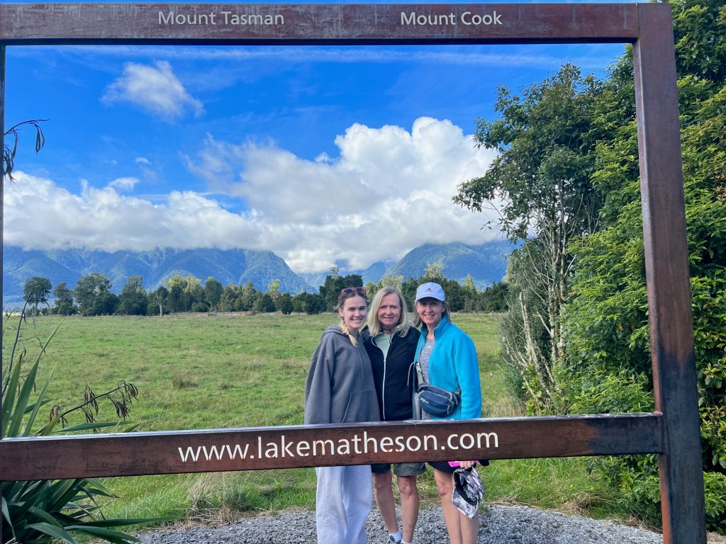 Our first exploration of the west coast took us to the famous Fox Glacier. We got a peak at it from some distance but it was partially obscured by the clouds on the mountains. The trail at nearby Lake Matheson is pictured. Nearby Franz Josef Glacier was not visible this day at all-disappointing to me as all of us Ruggles can be trace back to one Franz Josef Ruggle in our family tree.